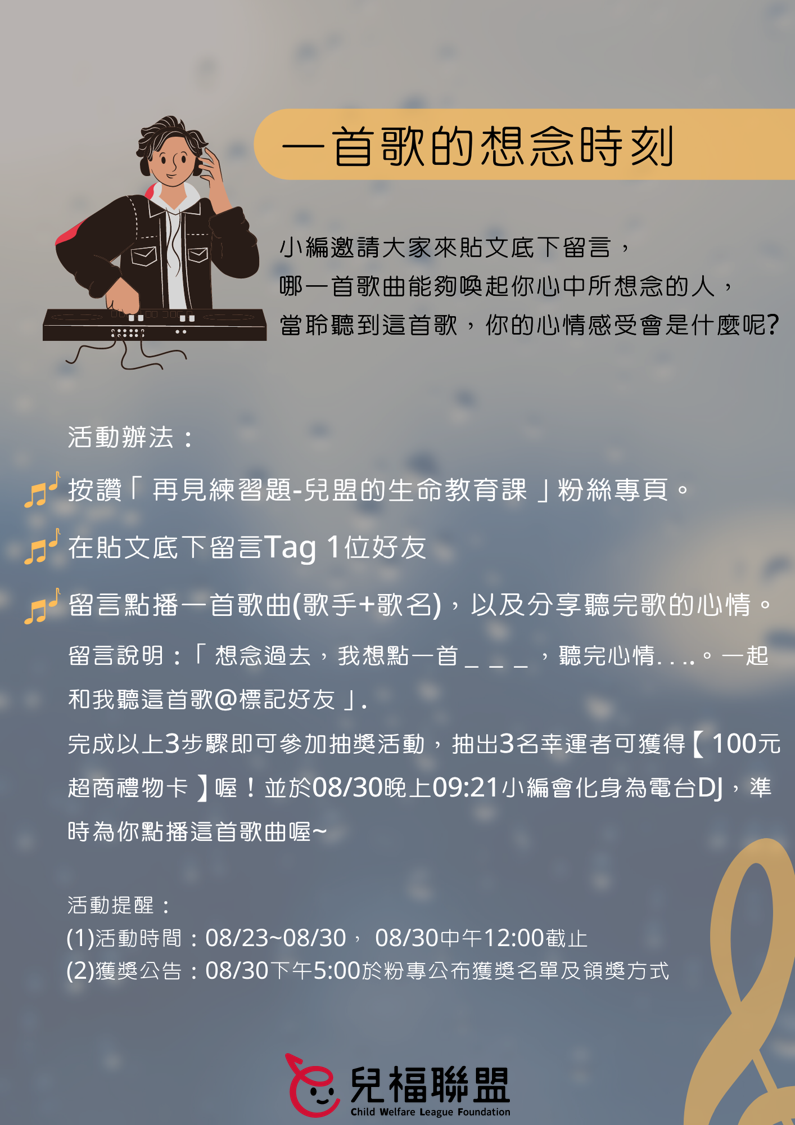 - 按讚加入「再見練習題-兒盟的生命教育課」粉絲專頁。