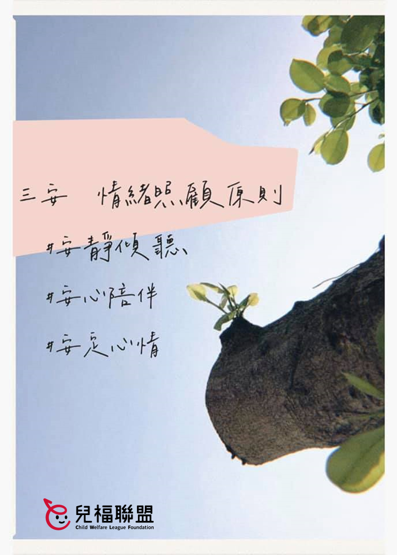 請務必記得:你所產生的任何情緒都很正常,不論是害怕、緊張還是痛苦...,而對孩子而言,因為這樣的感受和經歷可能相當陌生,所以他們會非常需要有大人們陪伴一起度過,讓我們一起從情緒照顧三安原則,協助孩子好好關照自己。