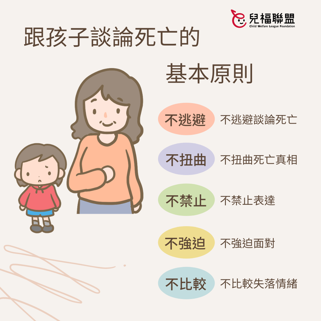1.不逃避:不刻意逃避討論死亡或假裝沒有發生什麼事,並讓孩子知道有需要時可以找人幫忙。