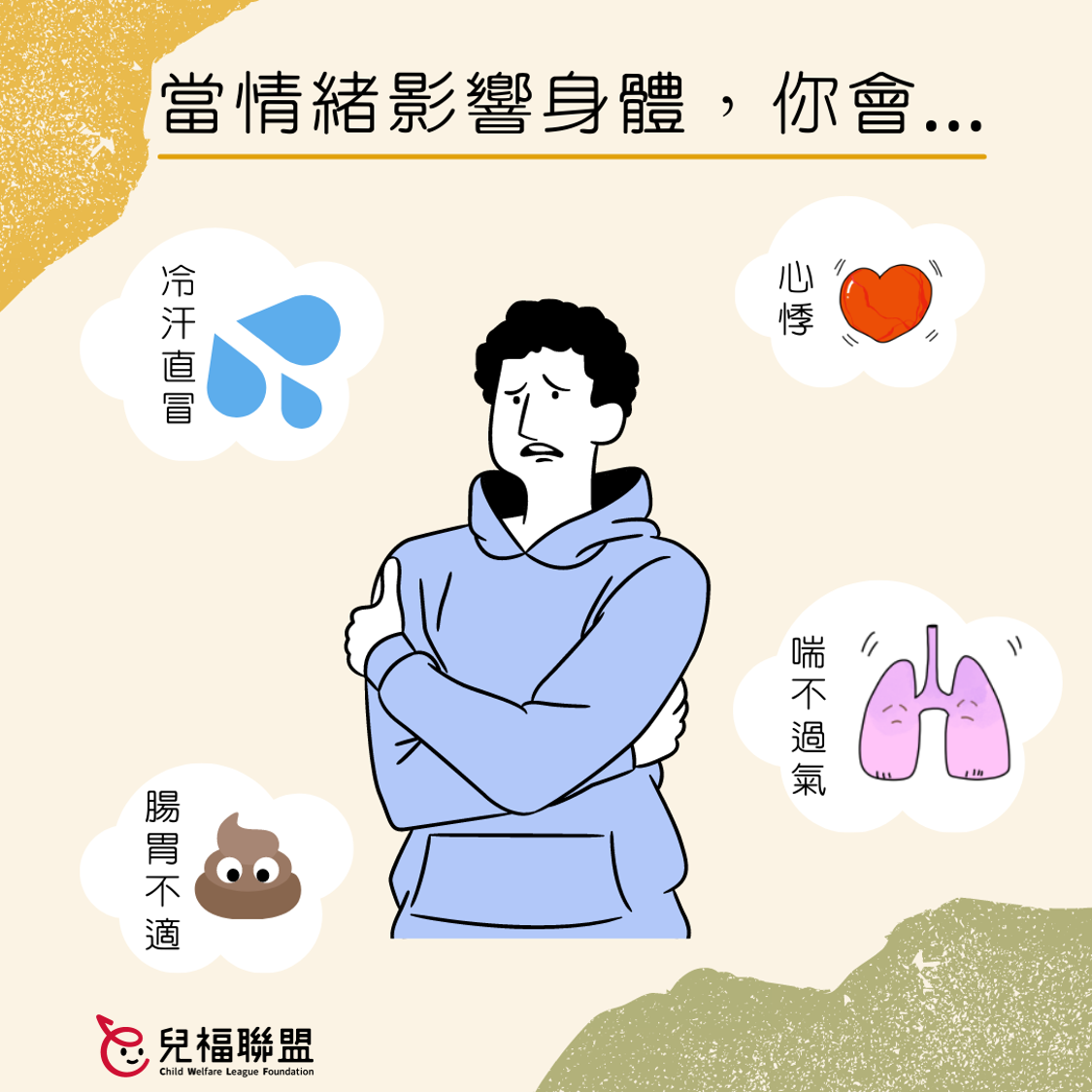和我們分享在不同情緒下,身體出現的反應,就有機會獲得情緒紓解包!