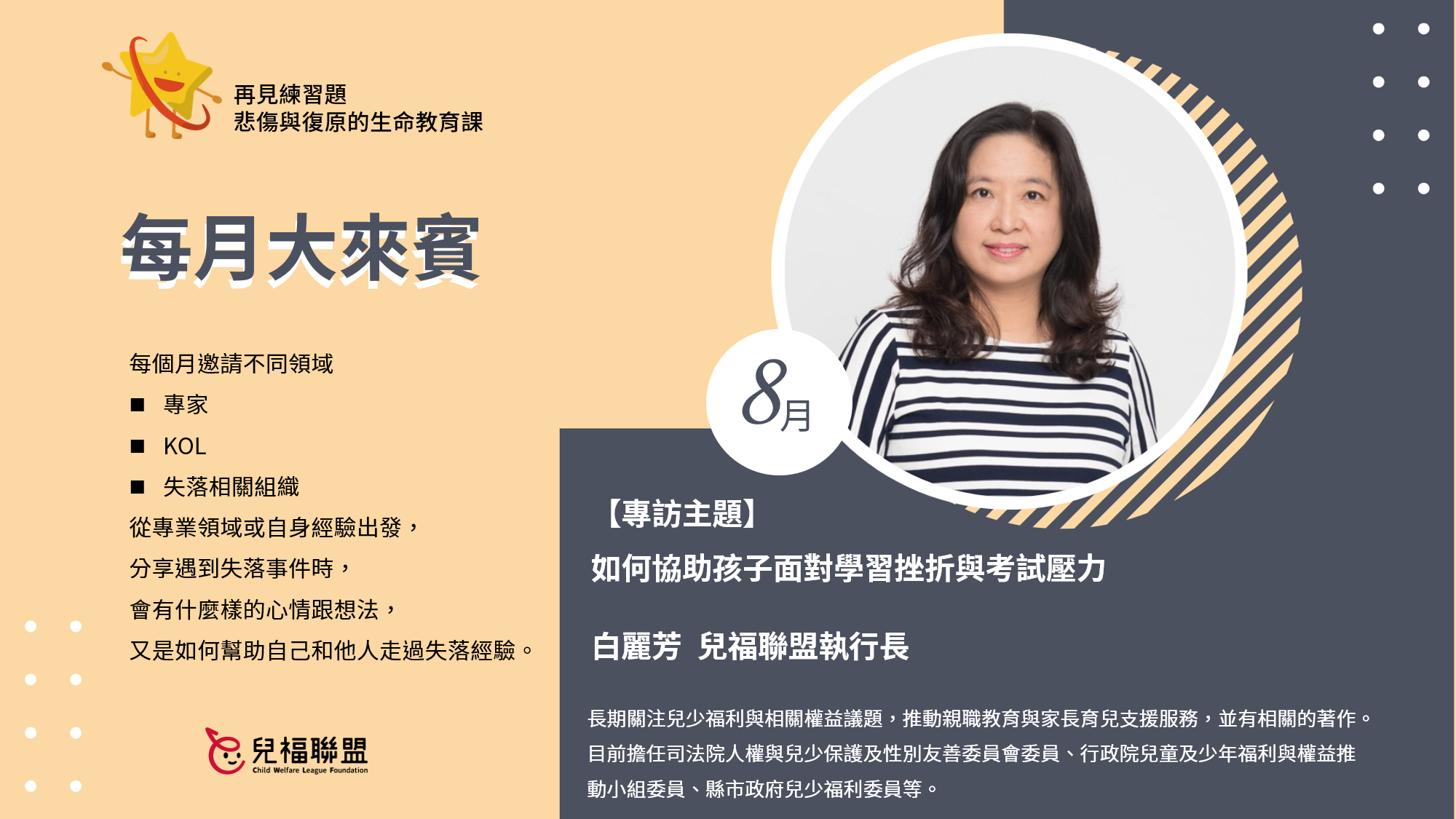每月大來賓—8月白麗芳 兒福聯盟執行長