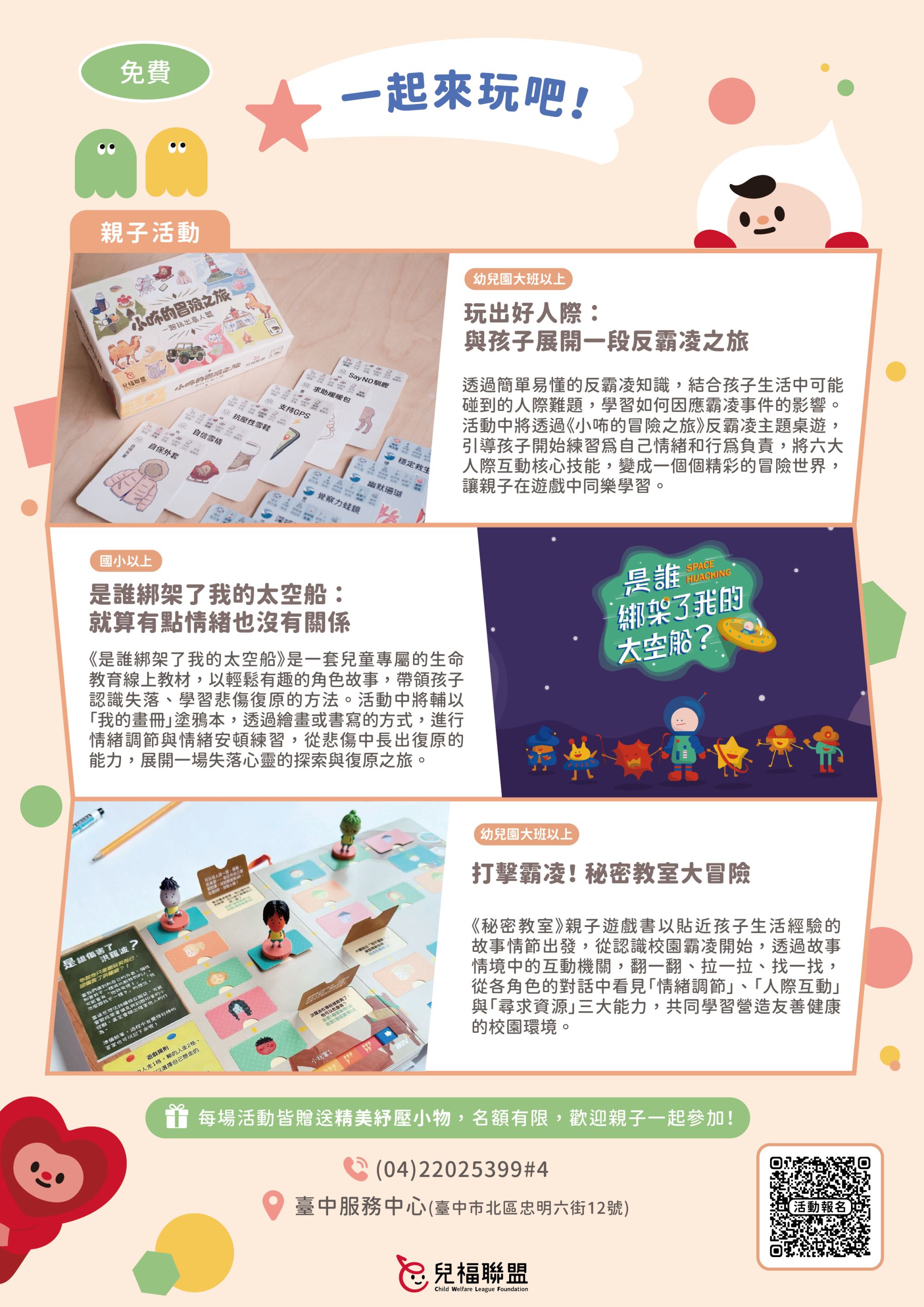 活動地點:兒福聯盟台中服務中心(台中市北區忠明六街12號)