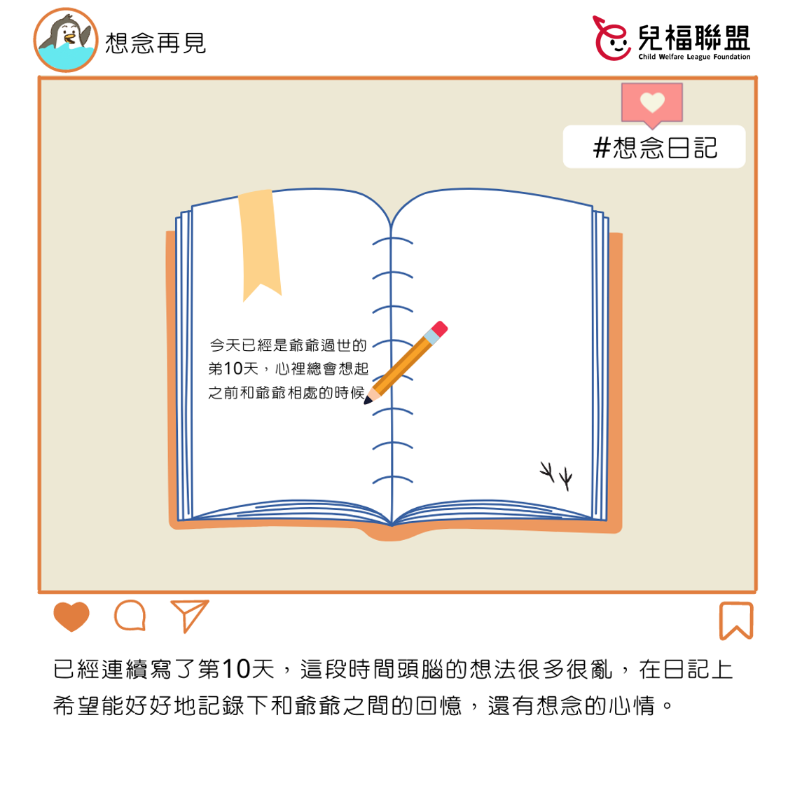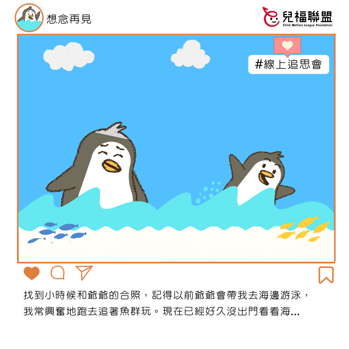 幸好身處在科技發達的世代,透過線上參與,可以跨越地域限制,讓我們依然能夠互相陪伴、思念與療癒,一起度過悲傷情緒。如果悲傷的心情不容易說出口,我們還是可以透過科技的協助,紀錄自己的想念心情,可以是文字的書寫,也可以是照片、影片、音檔等等不同媒材,留下記憶中與家人相處的回憶。